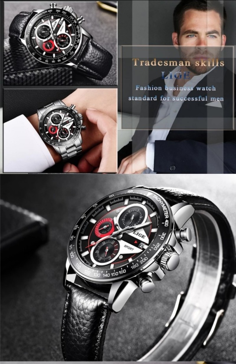 Reloj de Lujo LIGE con Movimiento de Cuarzo Japones