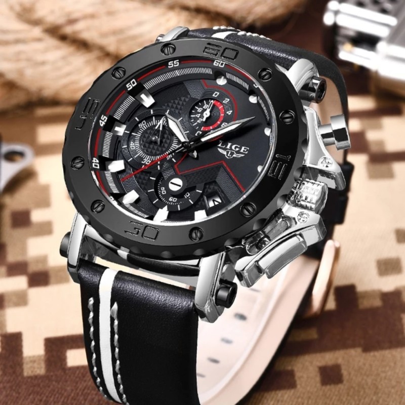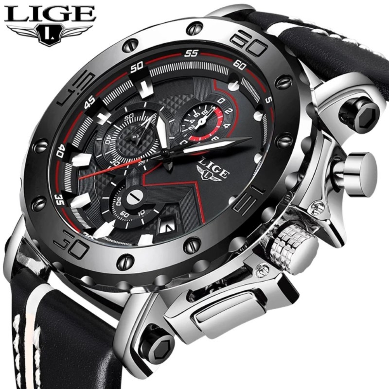 Reloj De Lujo LIGE Correa de Cuero con Movimiento de Cuarzo Japonés