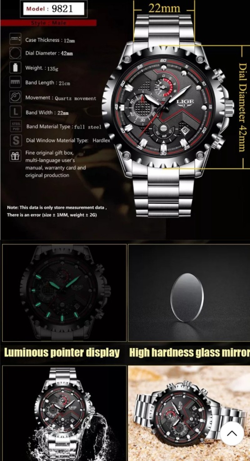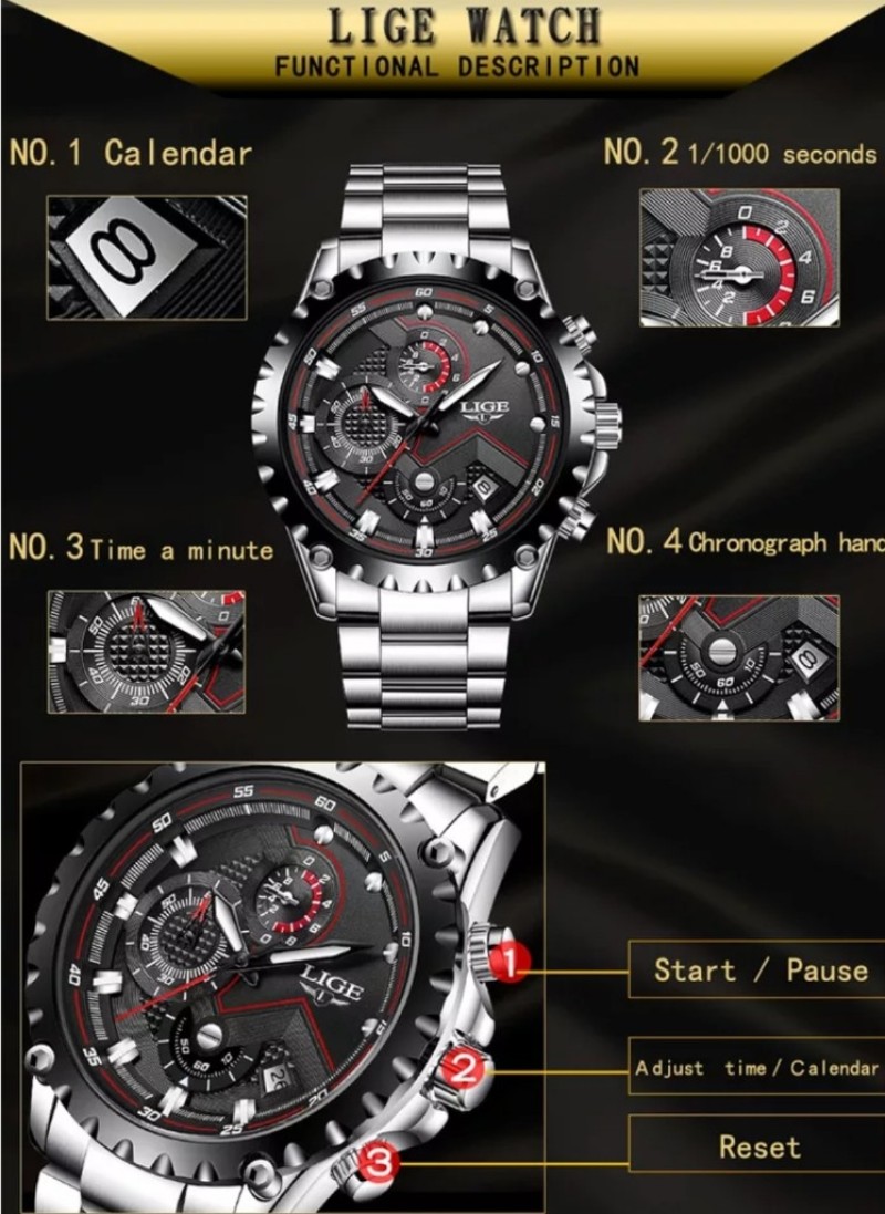 Reloj de Lujo LIGE Movimiento de Cuarzo Japones